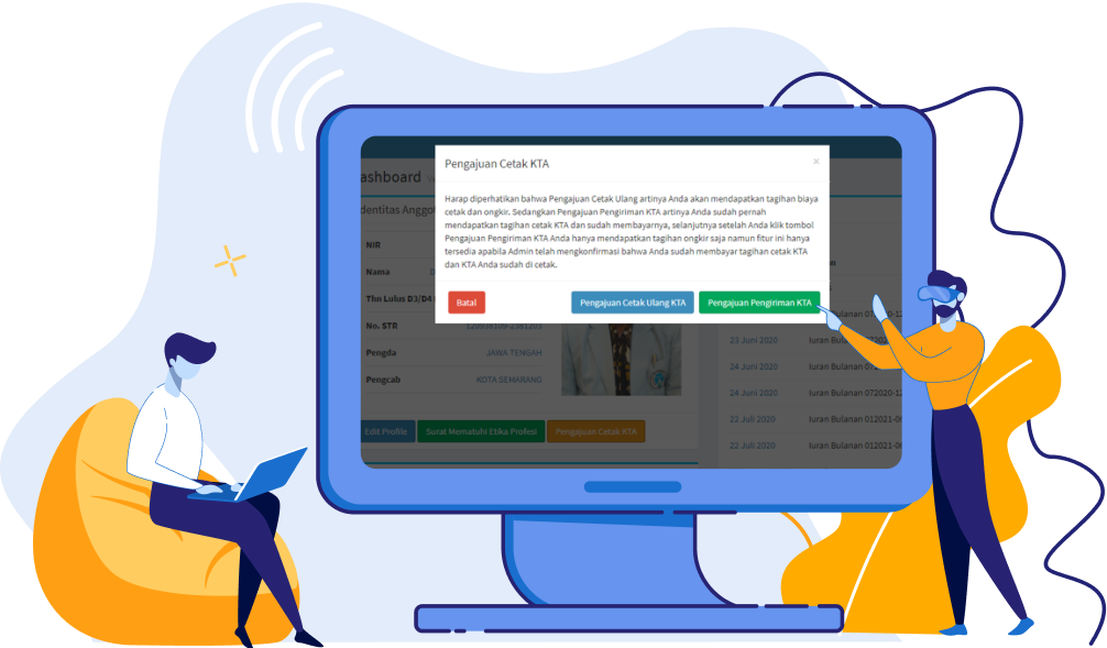 Harap pastikan bahwa Anda sudah mengisi alamat tujuan pengiriman KTA dan nama kelurahan tujuan pengiriman KTA.